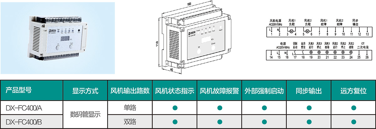 強(qiáng)制啟動:可通過外部輸出信號強(qiáng)制啟動風(fēng)機(jī)。